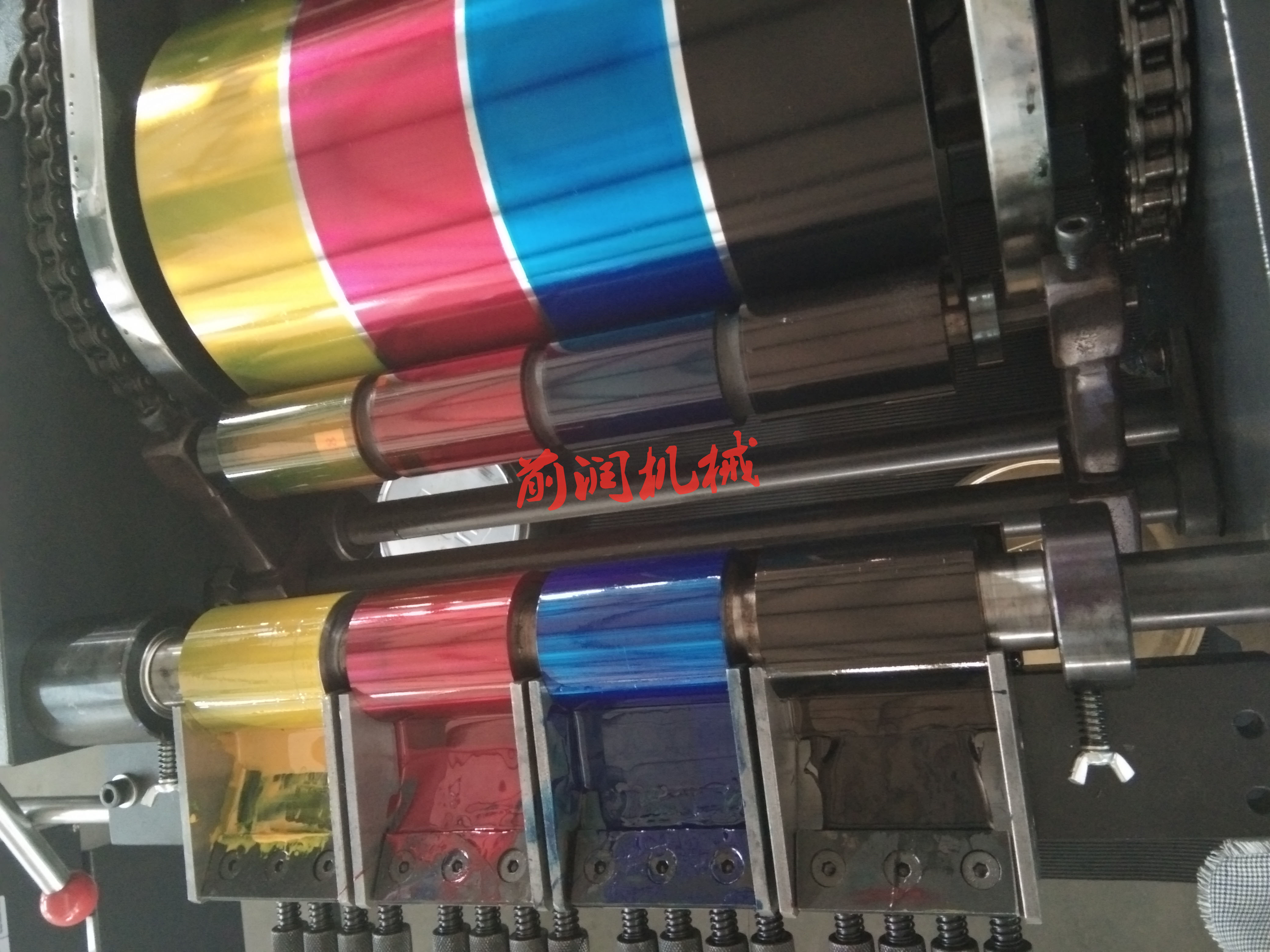 實踐證明,黃墨比品紅墨的干燥速度快近兩倍,品紅墨比青墨快一倍,黑墨固著性最慢。干性慢的油墨應先印,干性快的油墨后印。單色機為防玻璃化,一般最后印黃色以以便迅速結膜干燥。
