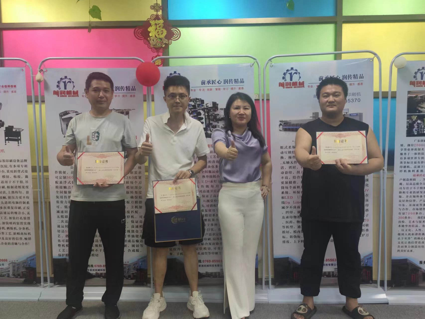 6月1日丁總為結業學員頒發結業證書,并對企業文化進行宣講,致力于企業更好的管理,希望大家同心同德,創前沿,潤無聲,用平凡的雙手,創造不凡的業績。為了企業的發展壯大,自律、自省、自警,了解企業,遵守企業規定。廣東前潤機械科技有限公司是坐落于美麗的東莞大嶺山鎮的一家集研發、生產、銷售、服務于一體的國家高新技術企業。前承匠心,潤傳精品,為客戶省人提效,工藝創新,是企業一直沿用的核心價值觀,創前沿,潤無聲,用前沿科技,為客戶創造利潤是企業堅持不變的理念。前潤機械永遠在前進的路上,不斷的與時俱進,促進公司的可持續性發展。努力打造成為標簽印刷設備行業技術風向標,爭取標簽印刷行業世界地位;成為智能制造非標定制供應商,爭取人工智能行業。
