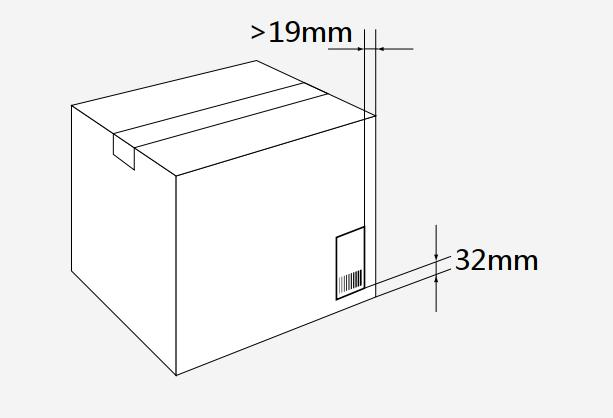 答:一個(gè)物流單元通常需要兩個(gè)標(biāo)簽標(biāo)識(shí),并固定在相鄰的兩個(gè)側(cè)面上。如果實(shí)際情況不允許,每個(gè)物流單元最少要有一個(gè)標(biāo)簽。 2. 問(wèn):物流標(biāo)簽位置應(yīng)如何放置?答:高度低于1m的物流單元:對(duì)于高度低于1m的紙板箱與其他的物流單元,標(biāo)簽中SSCC的底邊應(yīng)距離物流單元的底部32mm,標(biāo)簽與物流單元垂直邊線的距離不小于19mm,如下圖所示。