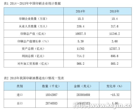 近年來,我國印刷業的發展受到了諸多因素制約,企業的生產經營日漸艱難。從表1可以看出,2015年我國印刷業總產值比2014年雖略微增加,但增速放緩,利潤下滑,企業數量也在減少,我們時常會聽到企業倒閉的消息;而利潤下滑更讓我們感覺忙活一年不掙錢,且一年比一年難。在這種形勢下,在印刷耗材的選擇上,大家已經不再盲目跟從洋品牌,各種印刷材料的出口在逐年加大,而進口則持續減少,民族品牌日益走強,越來越能感受到中國制造的力量。油墨也是如此,見表2,國產油墨已經在市場上占有了一席之地,印刷油墨有了更多的選擇空間,也有了更多的利潤調整空間。