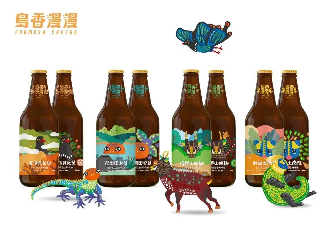 作品點(diǎn)評:該產(chǎn)品標(biāo)簽在視覺設(shè)計(jì)上以中國臺灣特有的動(dòng)物為主題,將視覺創(chuàng)意結(jié)合成獨(dú)特多元的臺灣神獸,如白鼻心+穿山甲、山羌+臺灣野豬、山椒魚+呂氏攀蜥、烏鴉鳳蝶+臺灣藍(lán)雀。不同的神獸藏身在不同的自然環(huán)境之中,每只神獸身上會帶有香料本身的香氣特色。玻璃酒瓶的包裝設(shè)計(jì)運(yùn)用了彩券刮刮樂的方式,設(shè)計(jì)了二層瓶標(biāo),當(dāng)消費(fèi)者拿起啤酒瓶時(shí),就如同在叢林探險(xiǎn)一般,可以拿出身邊的銅板,刮除遮蔽神獸若隱若現(xiàn)的生長環(huán)境之后,就能清楚顯現(xiàn)神獸原始的樣貌以及臺灣原生香料的圖像。此外,在鋁罐啤酒包裝設(shè)計(jì)上,將豐富的色彩與圖像環(huán)繞在鋁罐上,用大面積的自然環(huán)境與神獸個(gè)性展現(xiàn)啤酒獨(dú)特的不同口味感受。