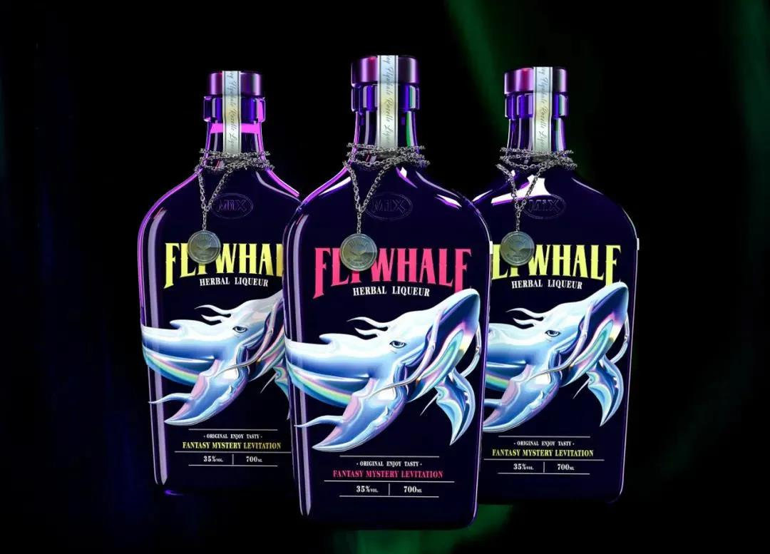 作品點(diǎn)評:FLYWHALE利口酒有洛神花和香草兩大系列的口味,有著自己的“求新屬性”。為了體現(xiàn)這一品牌理念,產(chǎn)品標(biāo)簽包裝構(gòu)思了“飛翔在夜空”的設(shè)計(jì)主題,以中國古代神話中的神獸“鯤”為靈感源泉,營造出一種幻覺、飄浮和渴望的感覺。在插畫設(shè)計(jì)方面,以黑色為底色,鯤采用迷幻色彩設(shè)計(jì),特殊的發(fā)光技術(shù)使其在黑暗中熠熠生輝。
