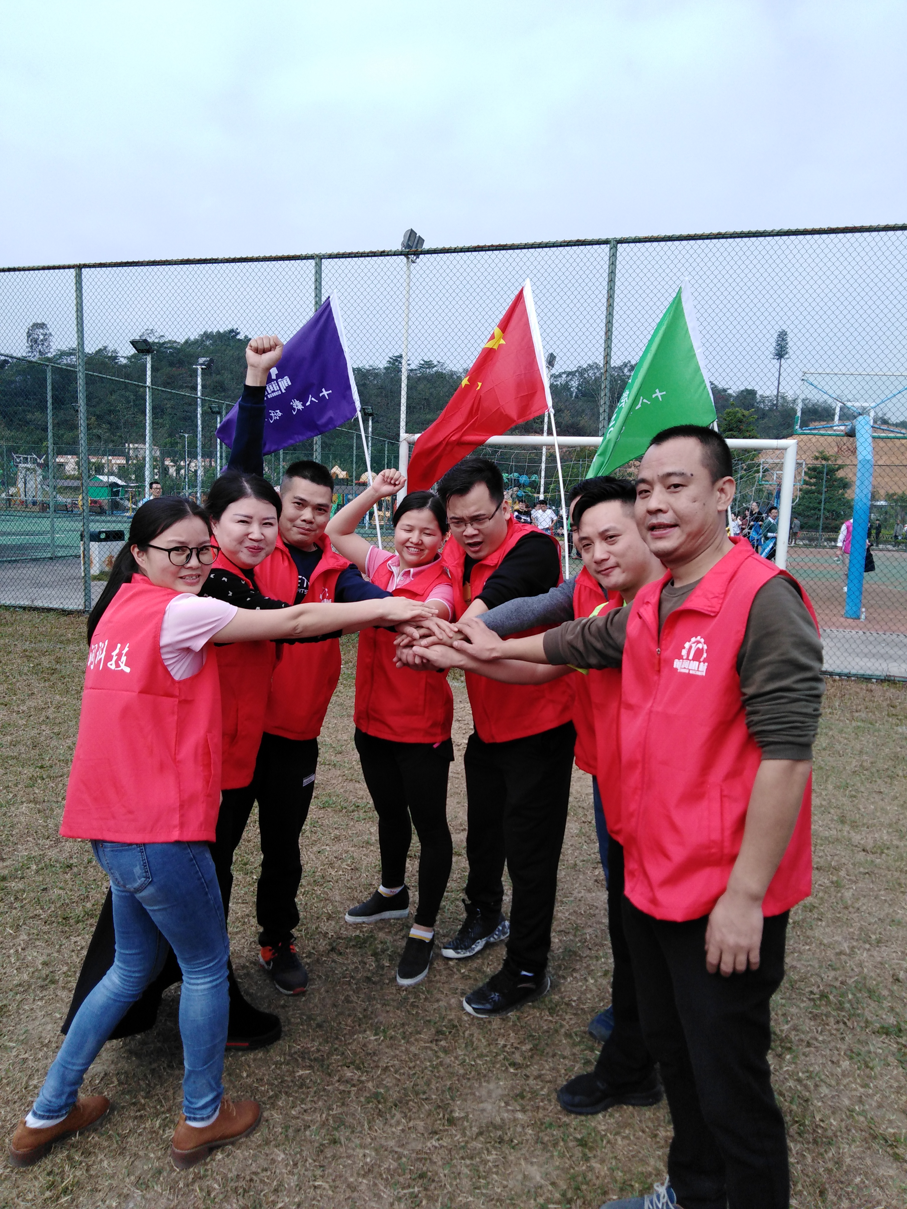 13日一大早我們就在公司高主管的組織下,統一乘坐大巴,趕赴目的地;惠州南昆山我們的旗手迎著鮮紅的五星紅旗和廠旗,身著紅色馬甲;我們出發啦,也預示著前潤2019紅紅火火!